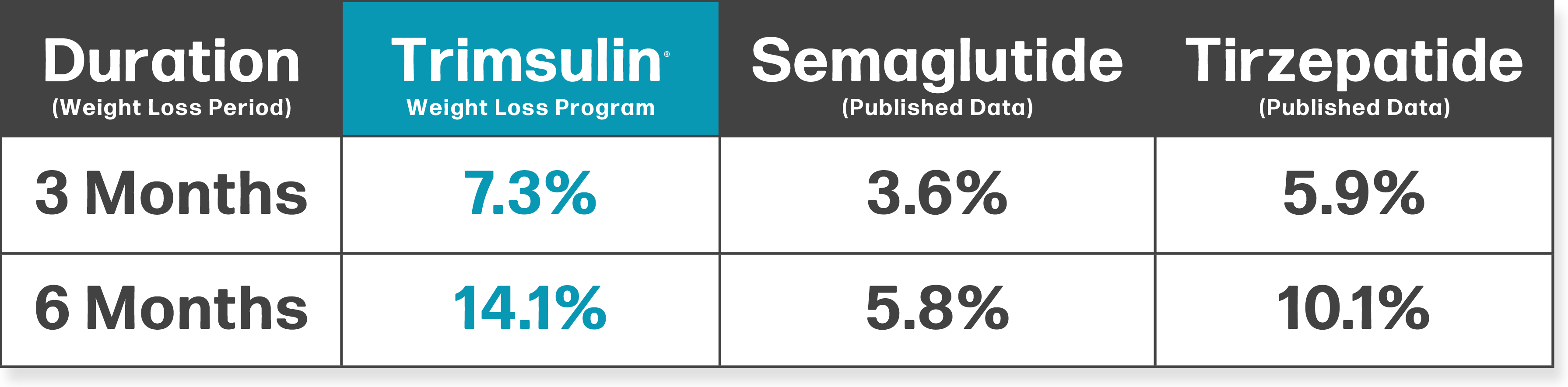 †When used in conjunction with the Trimsulin Weight Loss Program, which includes healthy eating recommendations and moderate exercise.